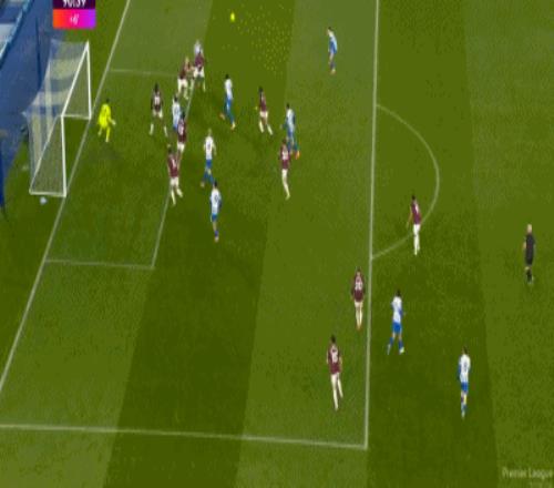 第73分鐘,鮑恩倒地情況下小角度破門,西漢姆聯1-0布萊頓